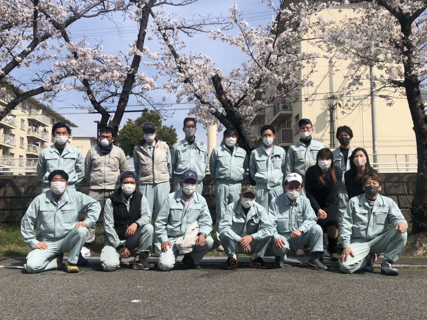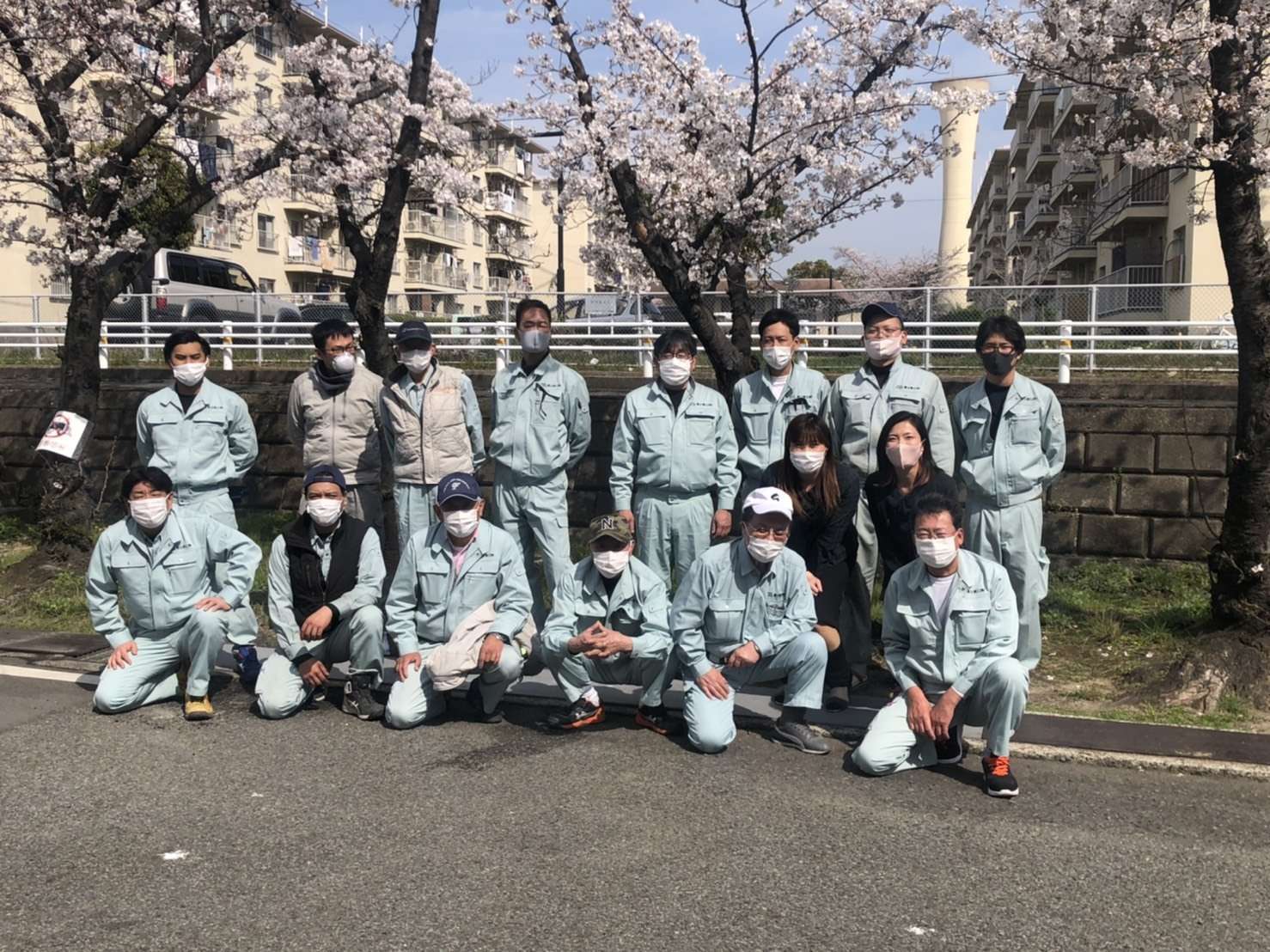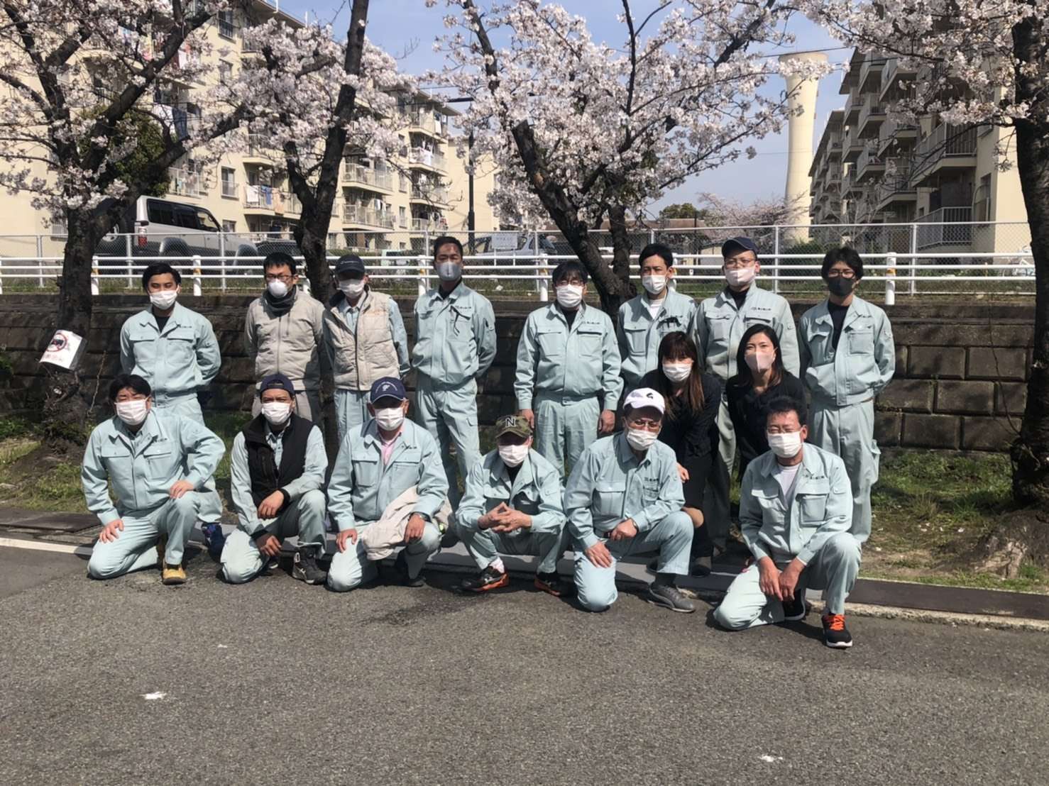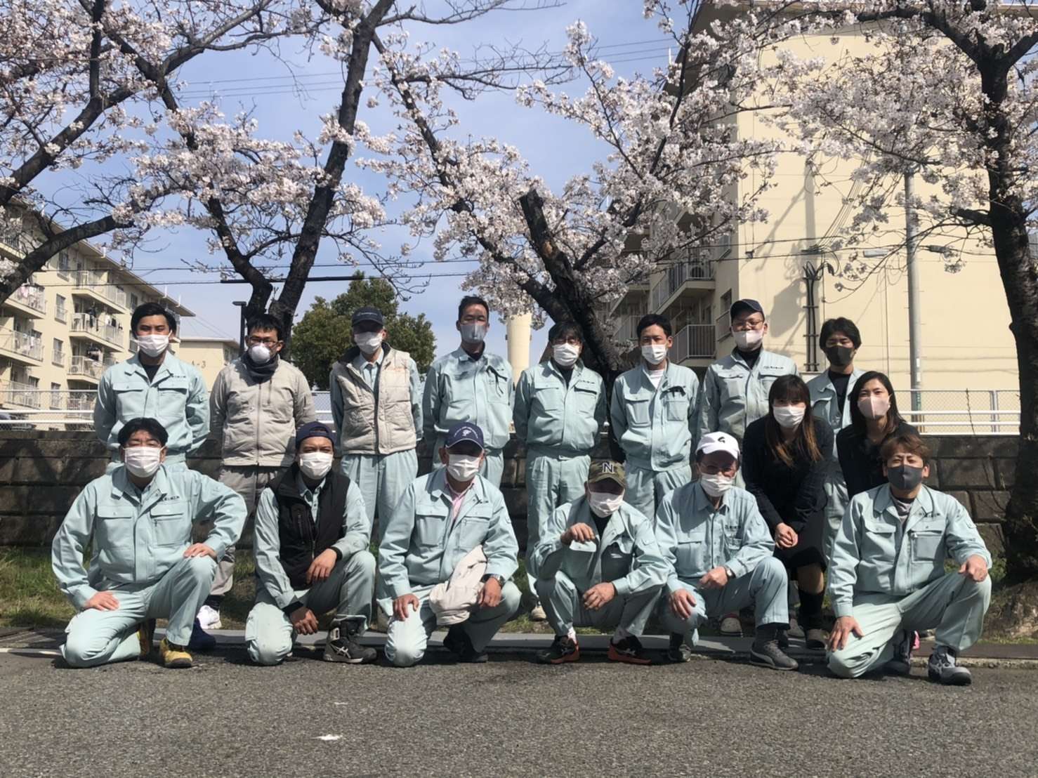 月1回程度しか社員全員 揃わないので サクラ 満開なので記念撮影しました。